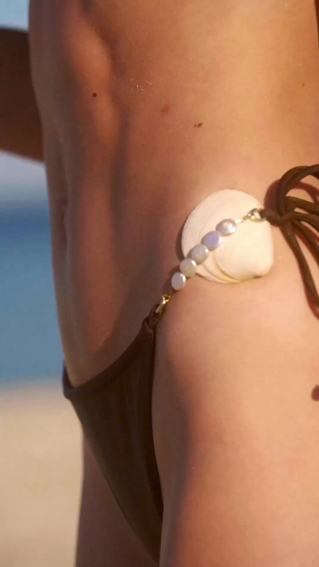 Notre bas de maillot de bain Escalet couleur Moka allie confort et élégance. Ses bretelles en perles d'eau douce et ses attaches réglables offrent un ajustement personnalisé. Sa finition sans couture assure un maintien discret et son tissu satiné une silhouette sublimée.
